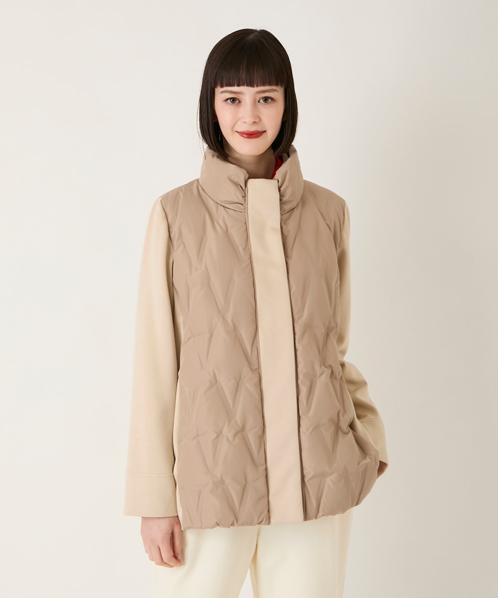 キルティングデザインのコートをさっと羽織ればお出かけコーデの完成。