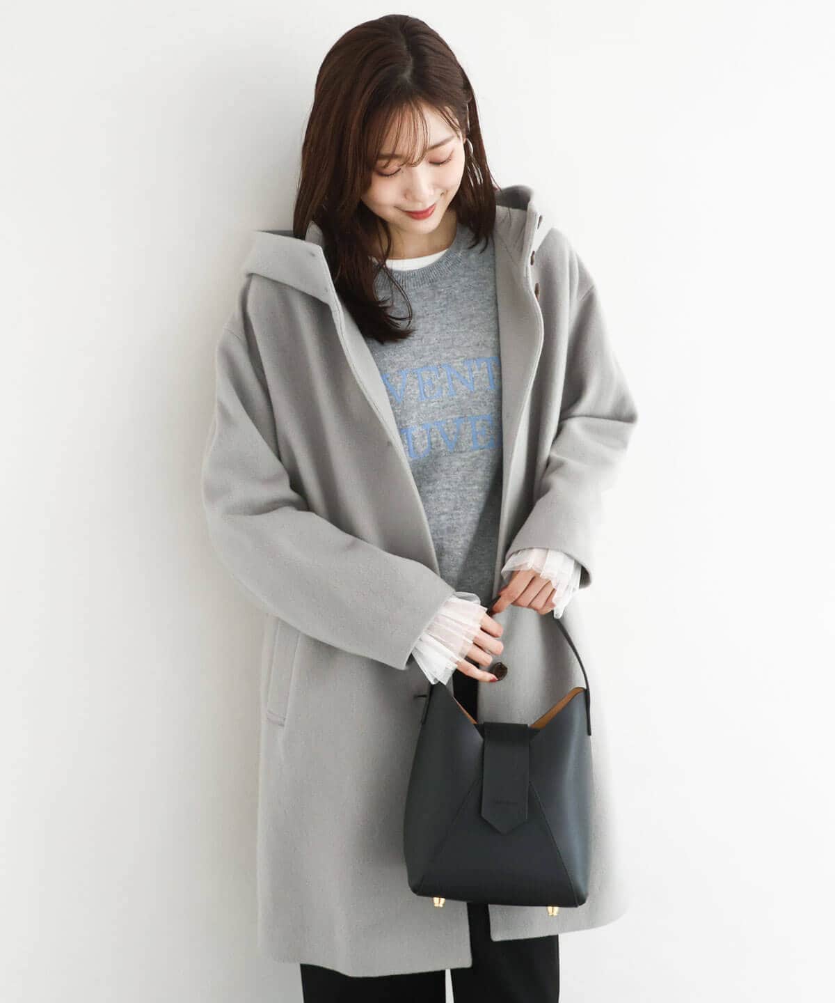ゆとりのあるコートで重ね着もしやすく、コーディネートの幅が広がります。