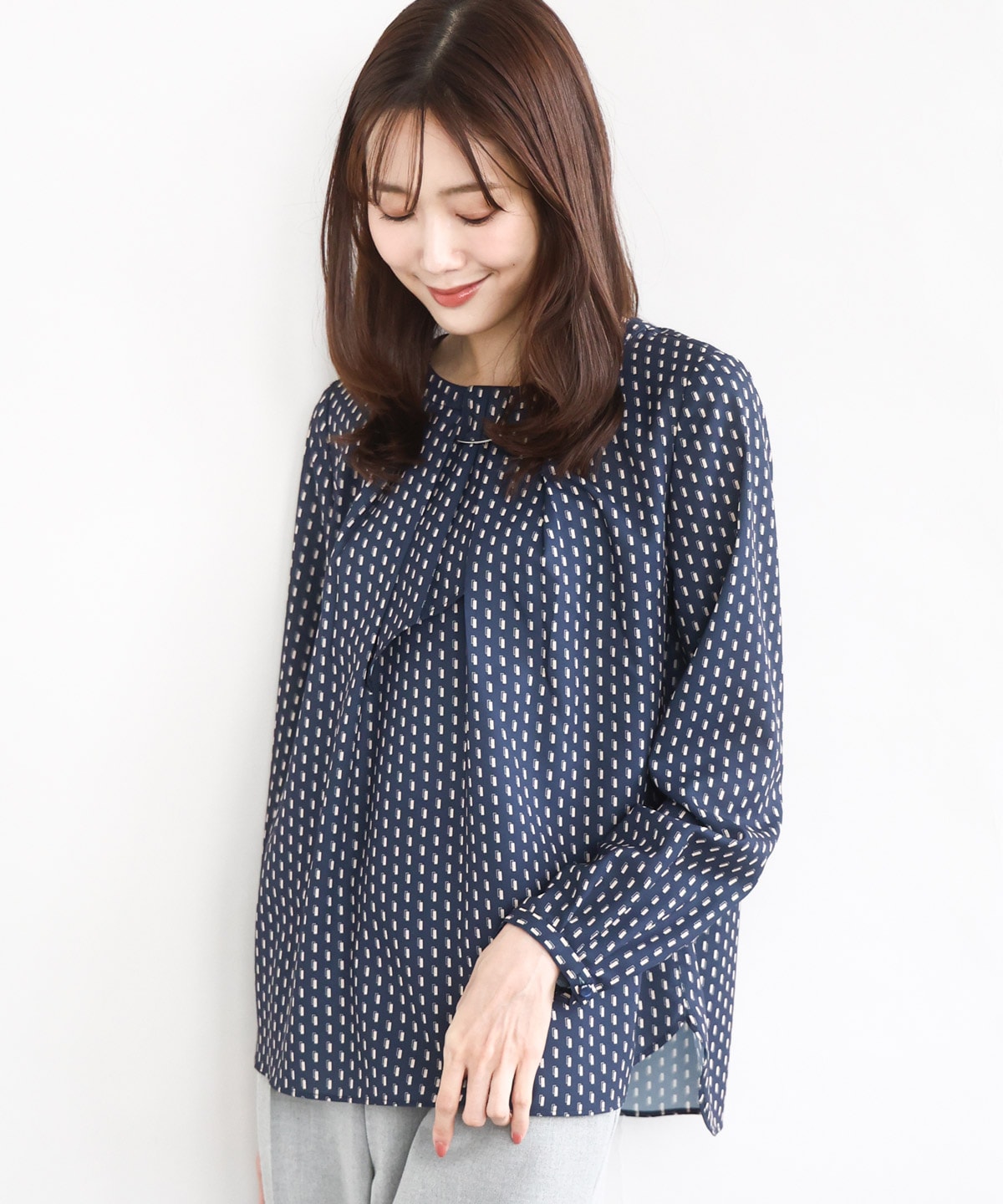 部分的にプリーツが入っており、動きが出て女性らしい印象。