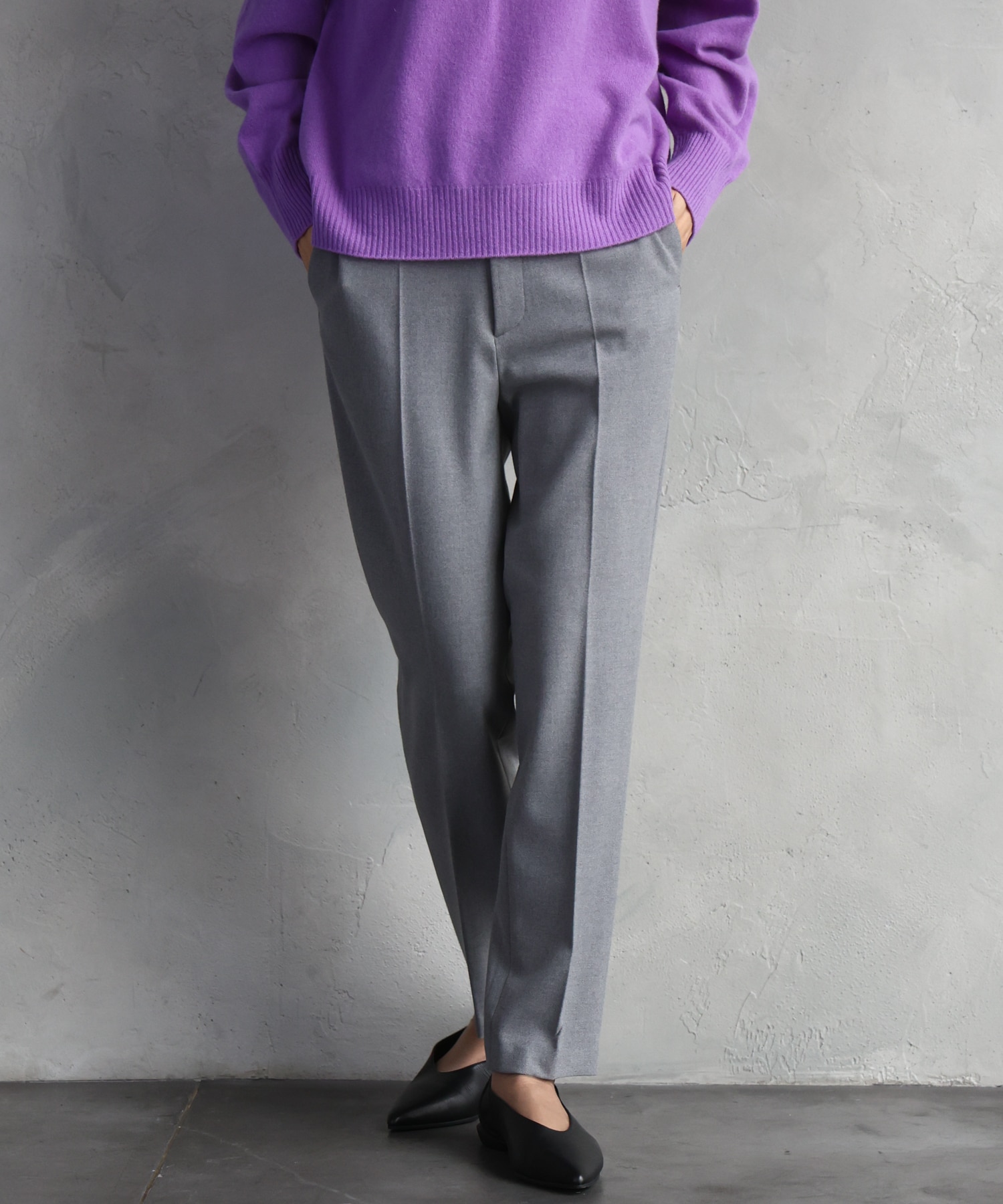 細身のシルエットながら伸縮性のある生地で、動きやすさも抜群。