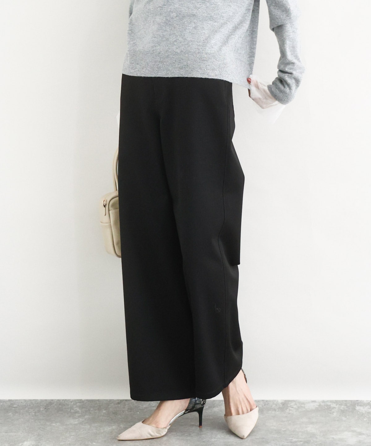 膝上で絞った大人のシルエットが、トレンド感と美脚効果を演出し、体型カバーにも最適です。