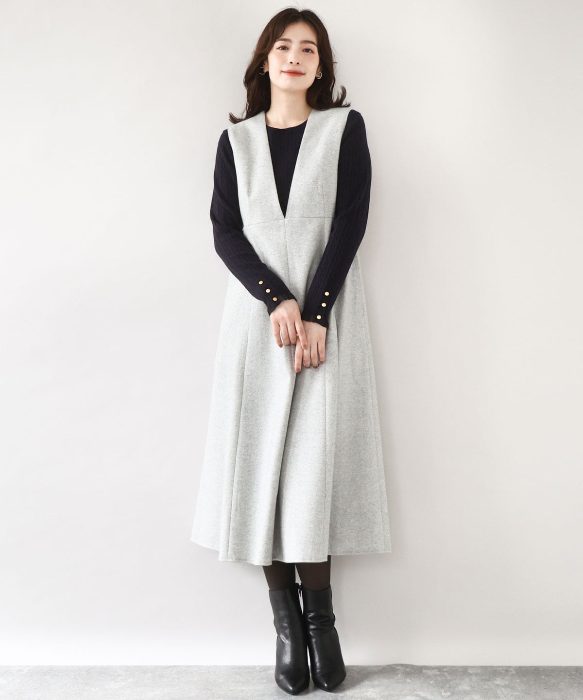 ラメツイードVネックジャンパースカート/洗える/WEB限定サイズあり