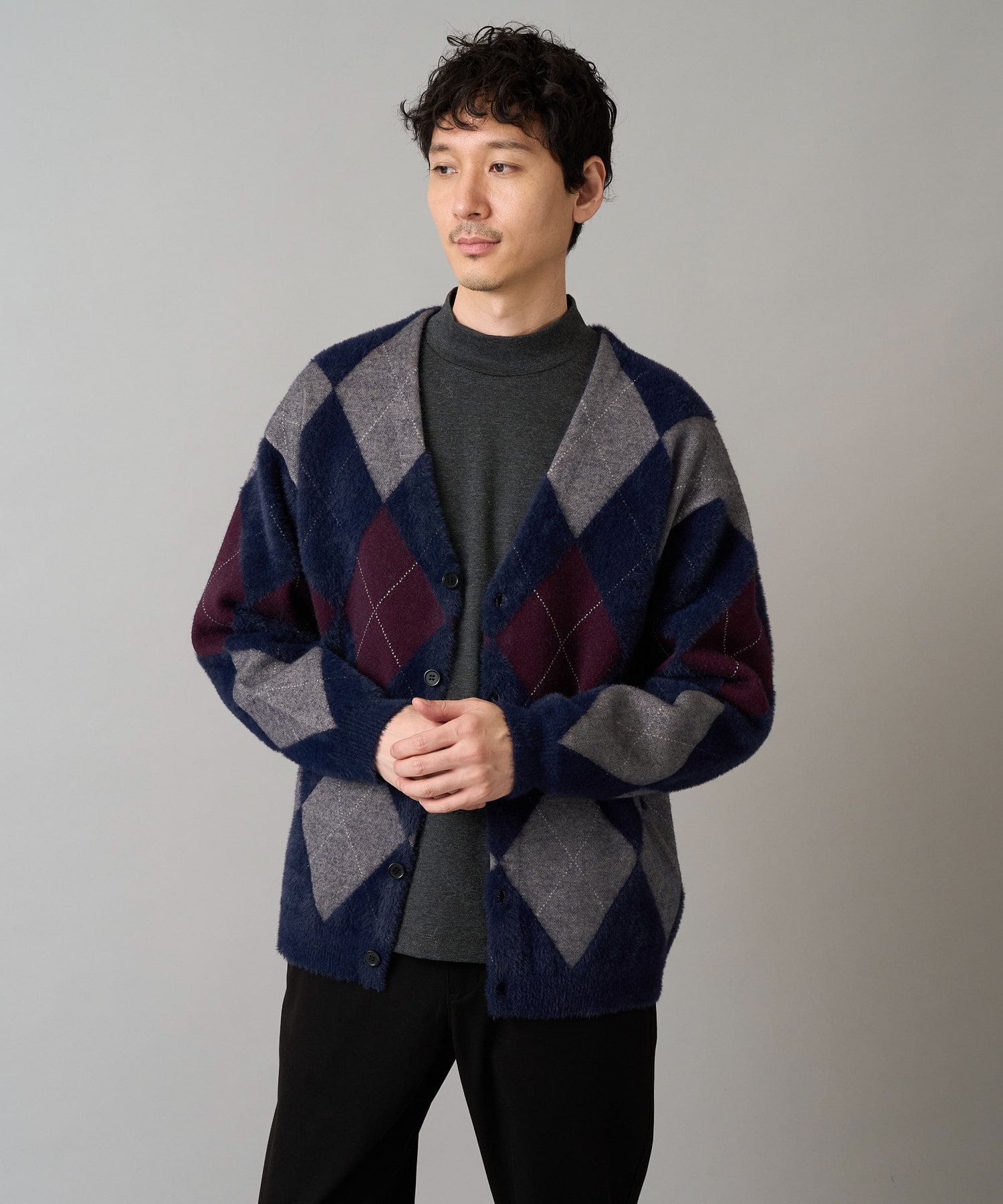 【洗濯で洗える】シャギーアーガイルワイドシルエットカーディガン
