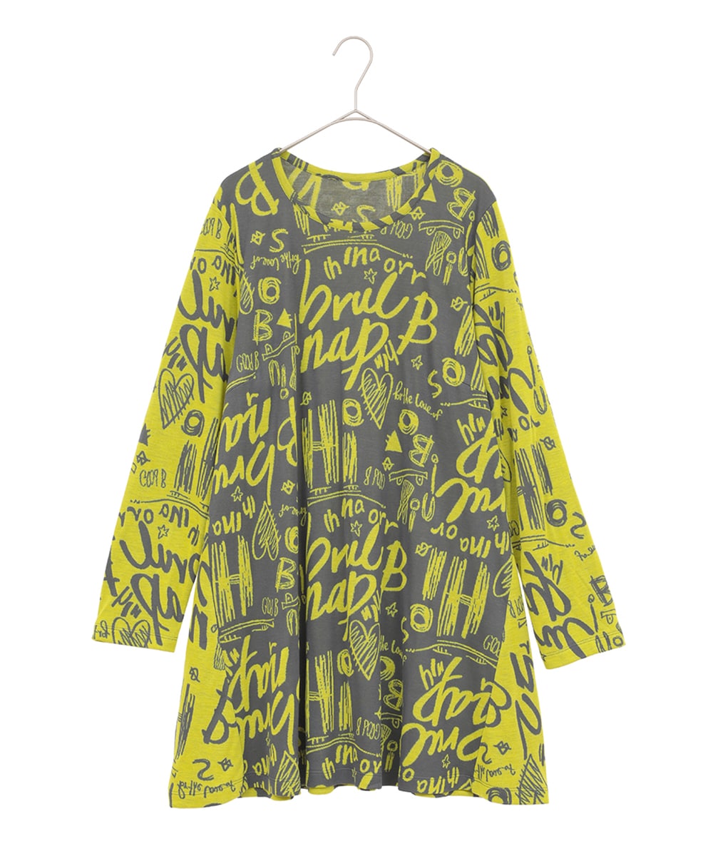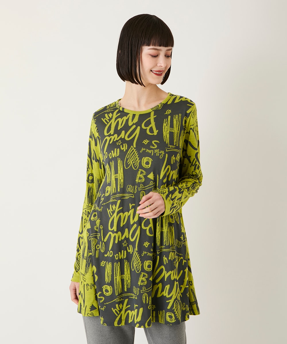【大きいサイズ】アートロゴ総柄チュニックカットソー /洗える