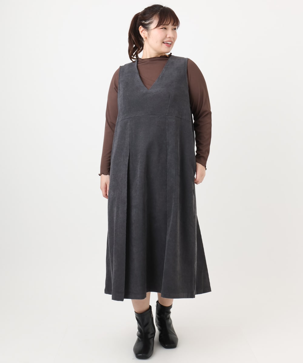 細コールがカジュアルで大人可愛いジャンパースカート。