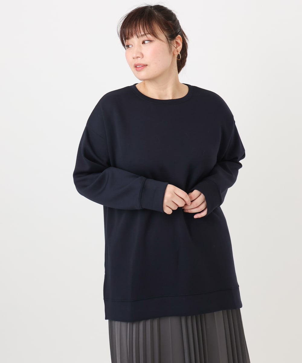 アウターも羽織りやすい、柔らかなジャージープルオーバー。