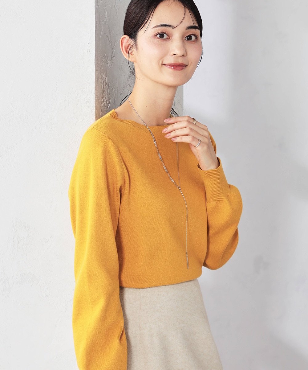 定番ボートネックニットはボトムを選ばず合わせやすい( ›ᴗ‹♡)