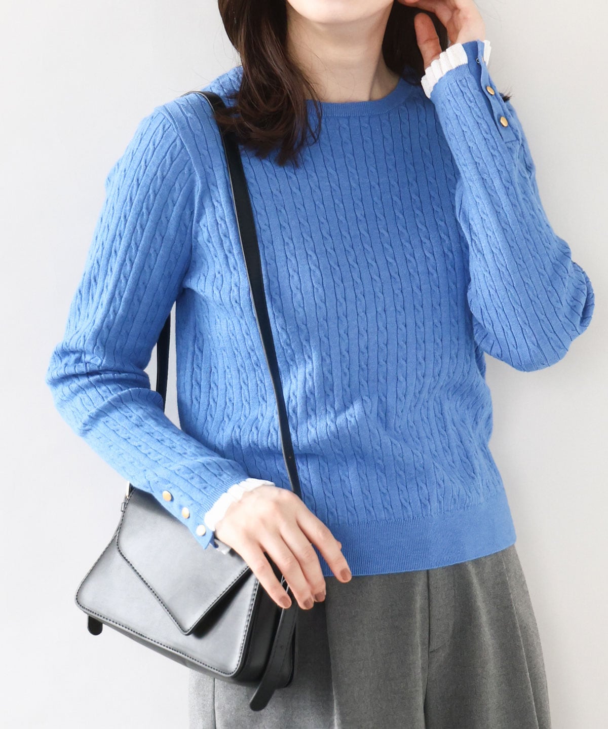 洗練された雰囲気を演出するミニケーブル柄ニットは、綺麗な色味と上品なデザインが魅力。