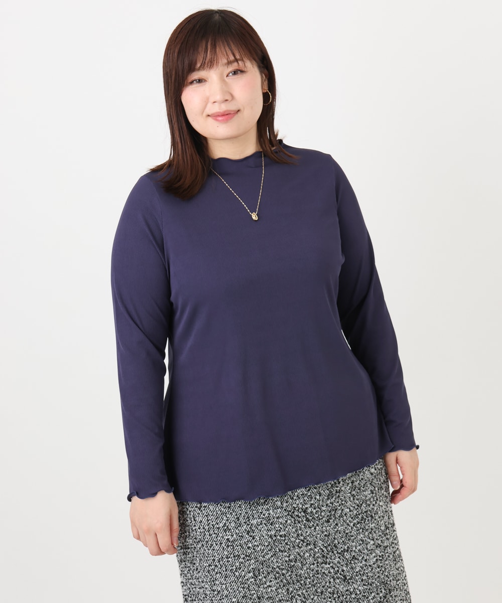 腰高に入れた切り替えと、片倒しにして入れたタックが裾に向かって縦ラインを出し、スッキリ見せます。両サイドポケット付き。