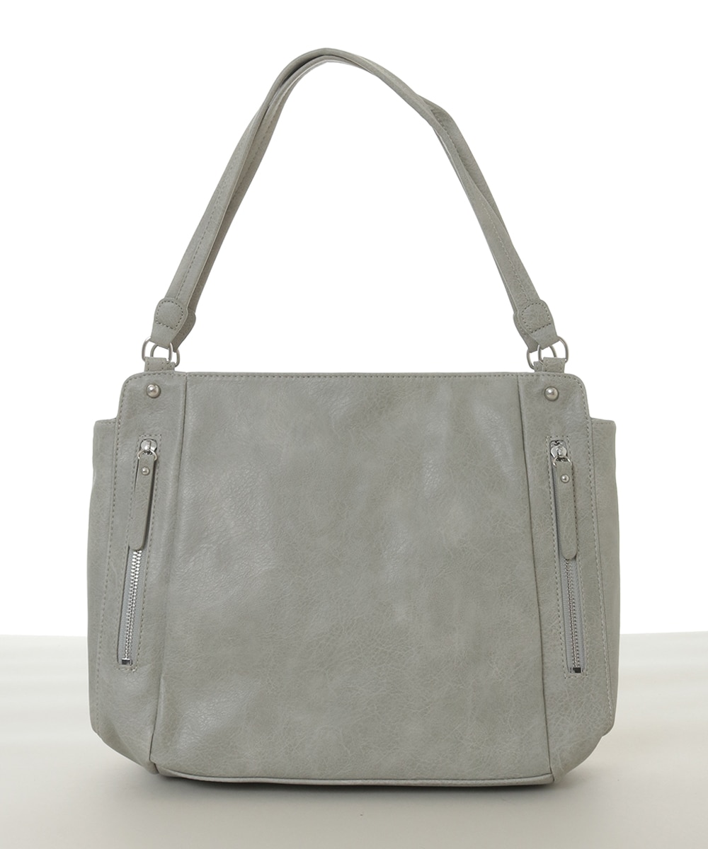 [2WAY/A4収納可]ジップデザインスクエアトートバッグ