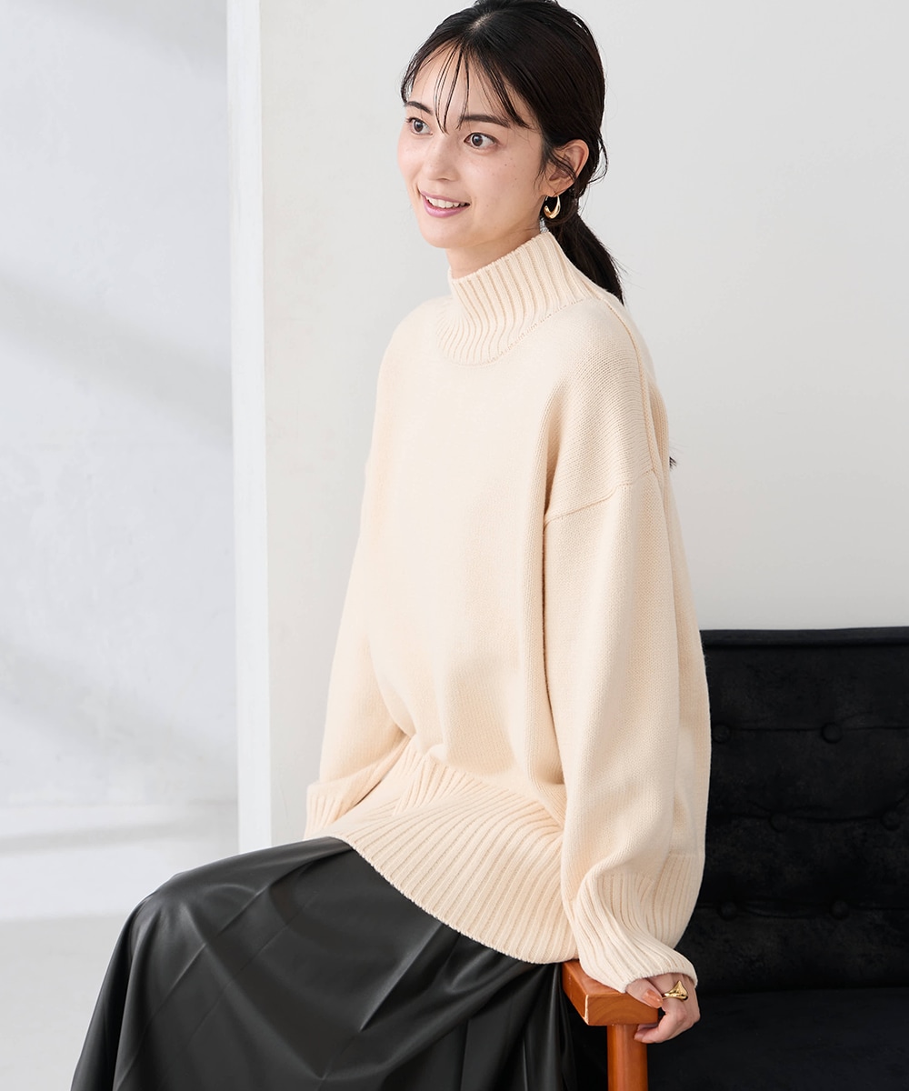 オフホワイトのニットに