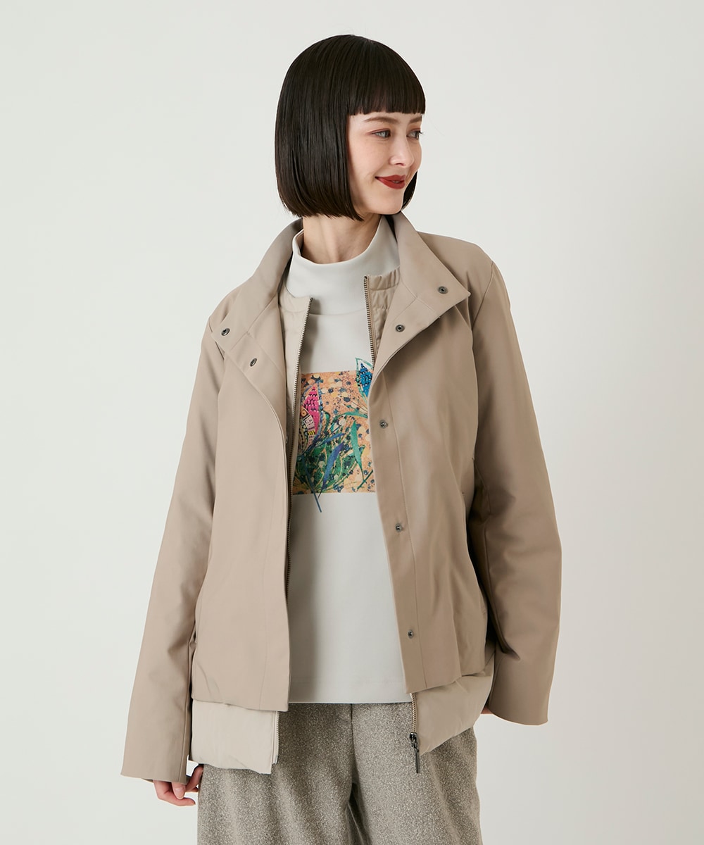 コンパクトなフォルムながら存在感抜群のチェックジャカードジャケットとシャーリングスカートは、スタイリングの幅を広げる必携アイテムです。
