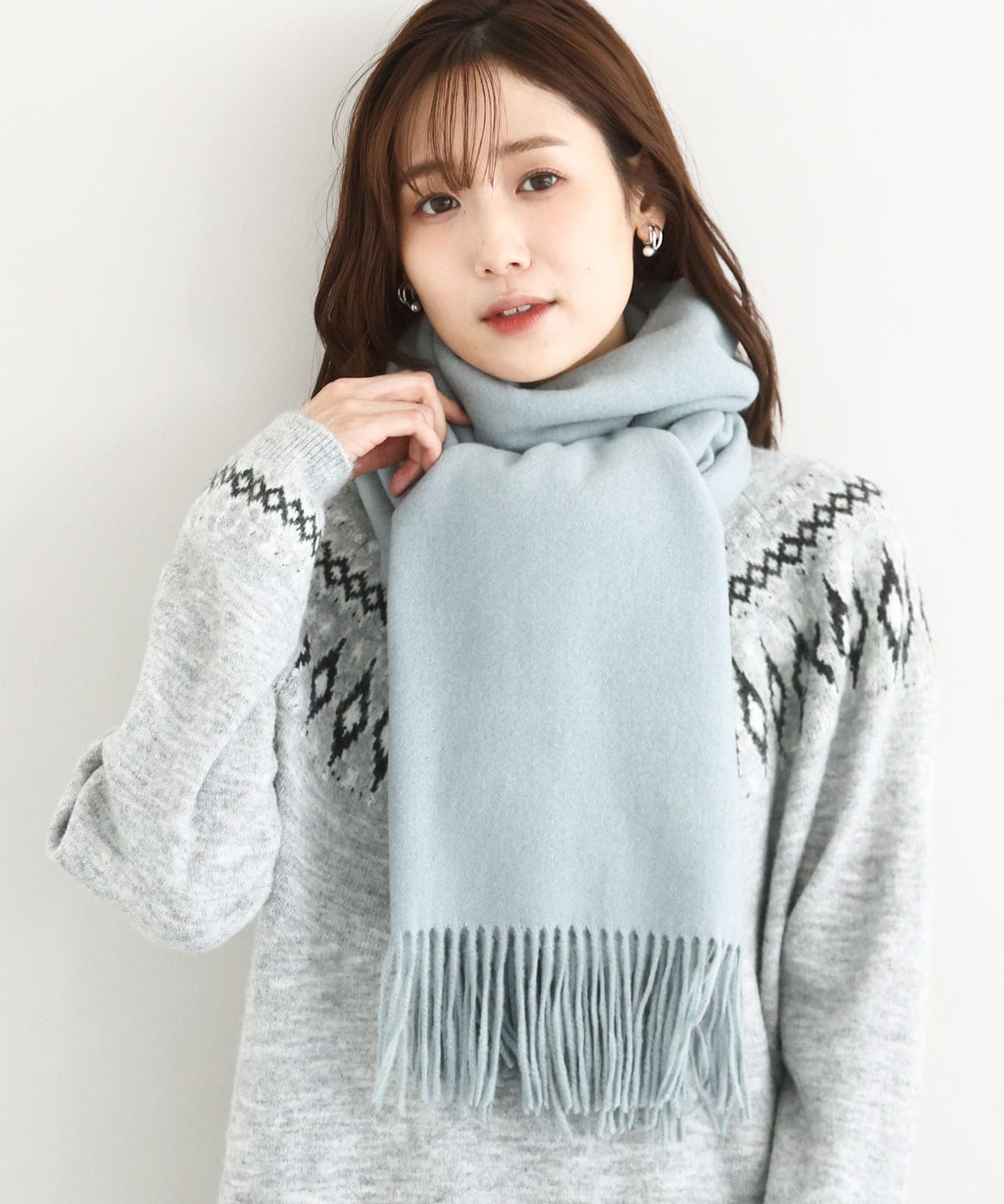 ふんわり柔らか、発色のきれいな万能ストール。ポリエステルレーヨンの厚手すぎない中肉素材で、秋から冬、春にかけてロングシーズンで使えそうです。表面感は起毛少なめのさらりとした手触りで、ちくちく感なく使用できました。