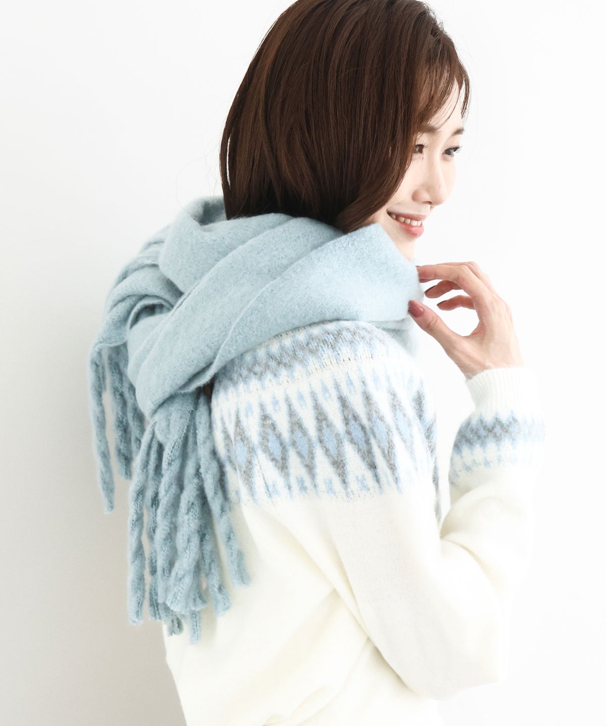 ふわふわモチモチの厚手ストールはお顔周りに程よいボリュームを持たせ、暖かさと華やかさをプラスします。
