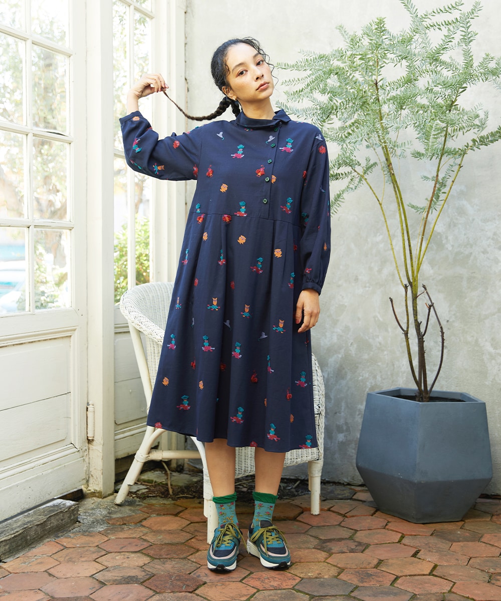 鳥の羽やトサカ部分をもけもけと立体感を出したデザイン!一枚着でも可愛い、ホコらしいワンピースです♡