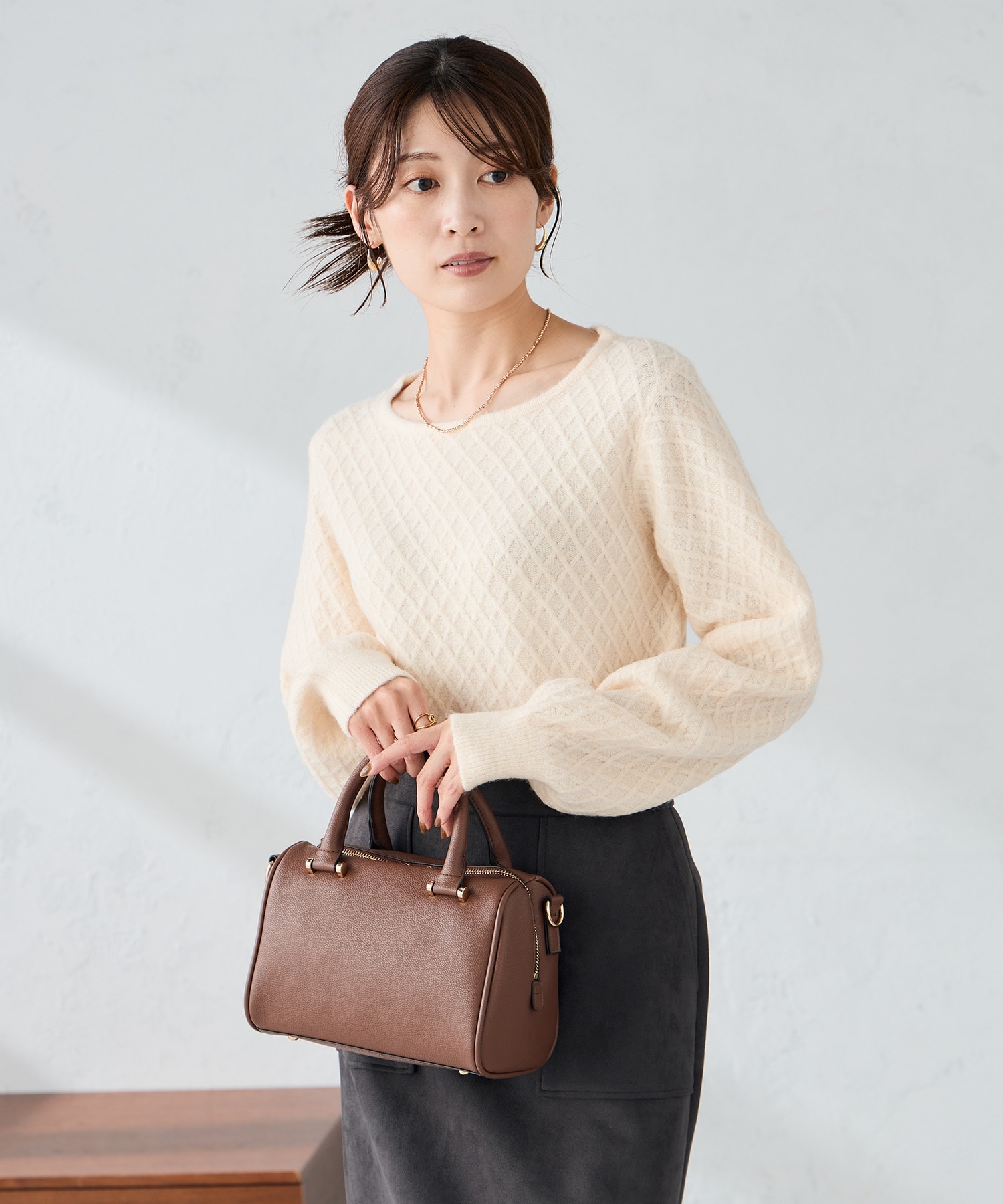コンパクトなニットやきれいめブラウスと合わせて通勤スタイルにおすすめ