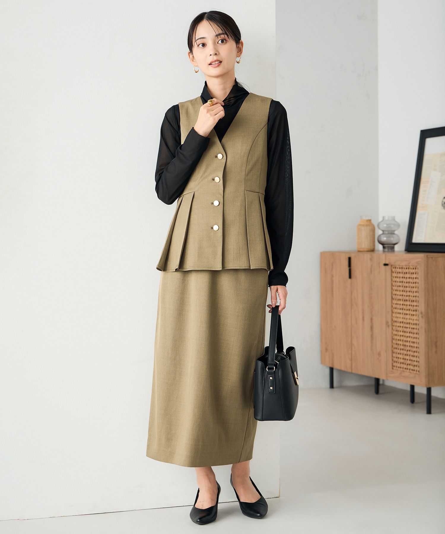 ・ジレはペプラムシルエットでスタイルアップ効果も