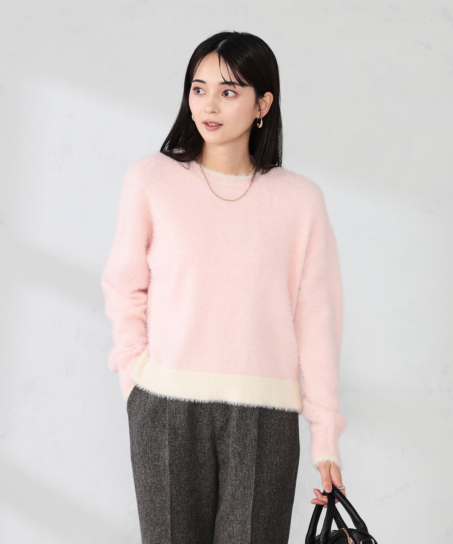 ・フェザーヤーンバイカラーニット