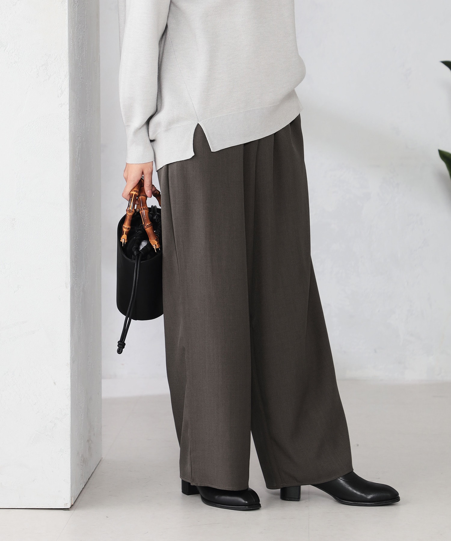 WEB限定のイージーワイドパンツと合わせることで、リラックス感溢れる大人カジュアルなスタイルも叶います。