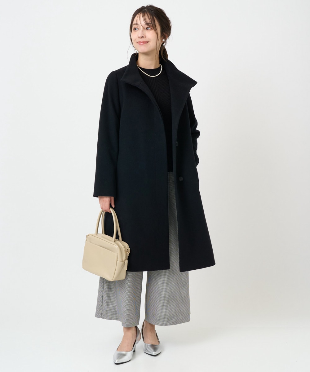 【小さいサイズ】SUPER100'sウール スタンドカラーロングコート