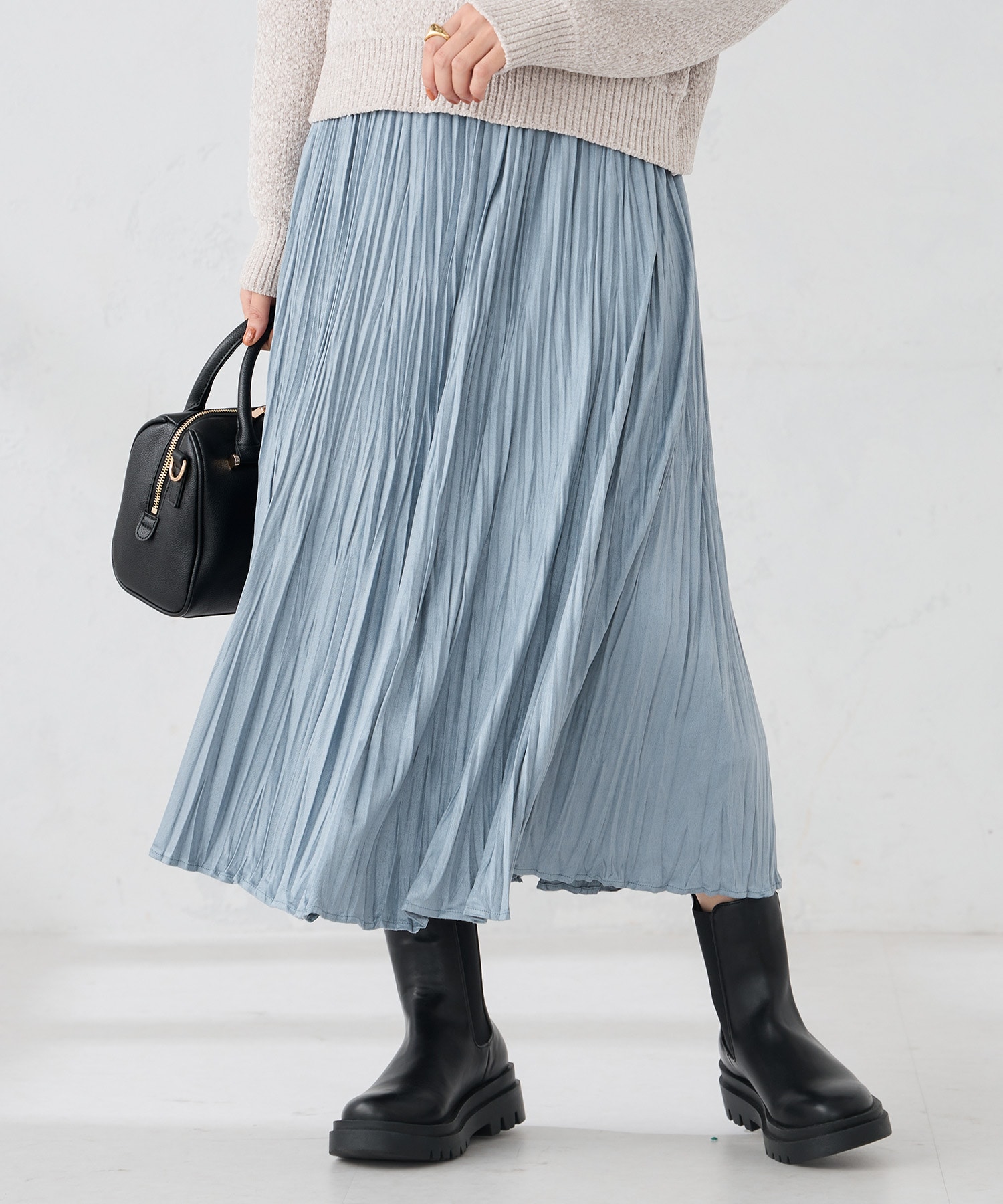 プリーツも細かすぎないので大人っぽい雰囲気になります。ウエスト総ゴムなのも嬉しいポイントです。
