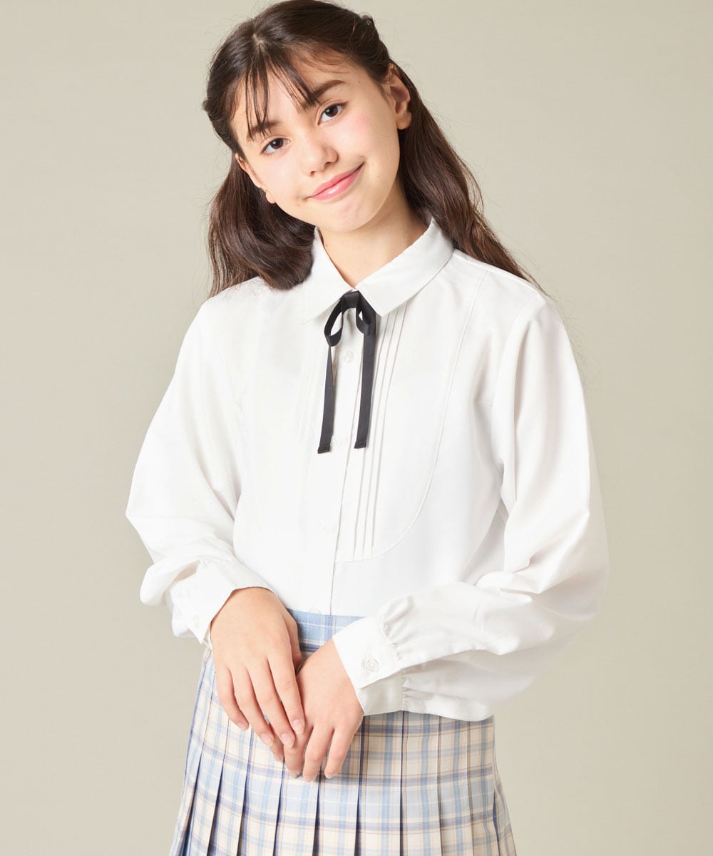 [150-160]【2026 卒服/シワになりにくい】リボンタイ付きピンタックブラウス