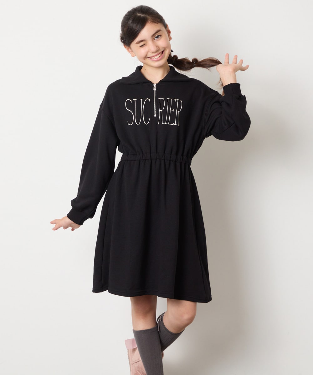 ブラックのトレーナー素材✕モノトーンの刺繍ロゴか大人可愛いです♪