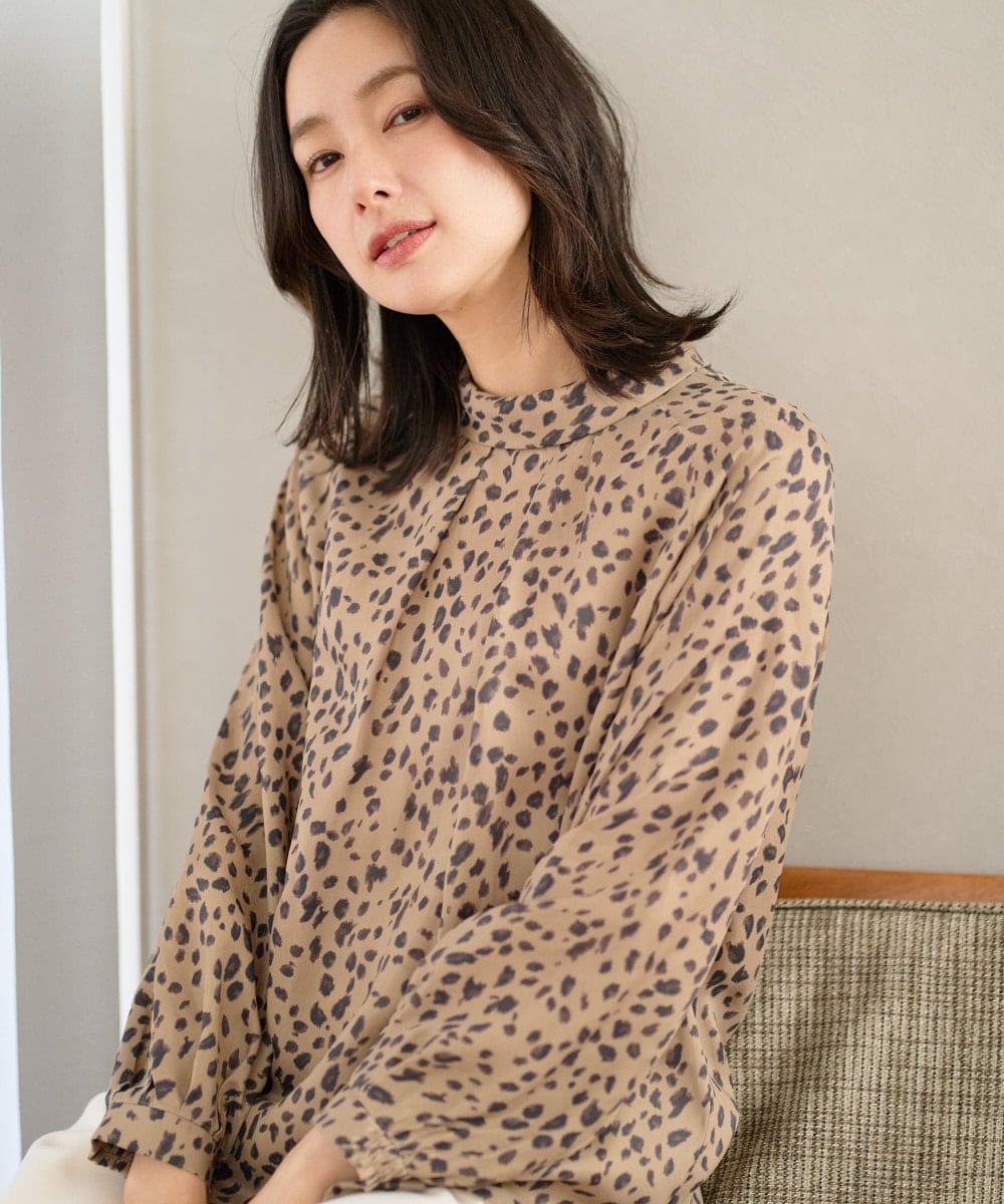 [日本製/セットアップ対応]レオパードロールネックブラウス