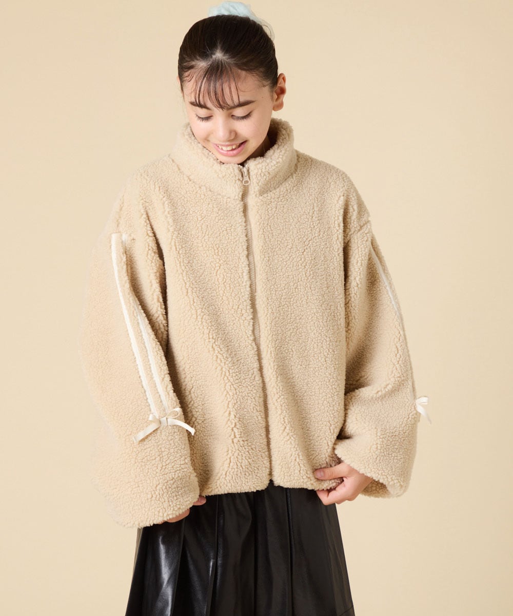 【お家で洗える/ラインリボンがカワイイ/今から冬まで長く着られる】[120-160]ラインスリーブボアブルゾン