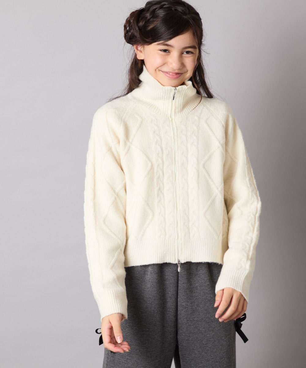 [130-160]【ダブルジップ/クロップド丈】ジップアップケーブルニット