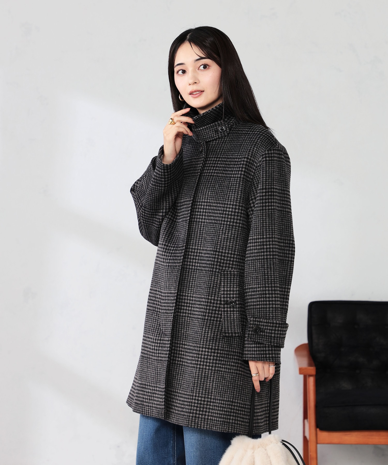 ☑ミドル丈Aラインシルエットのステンカラーコートです!