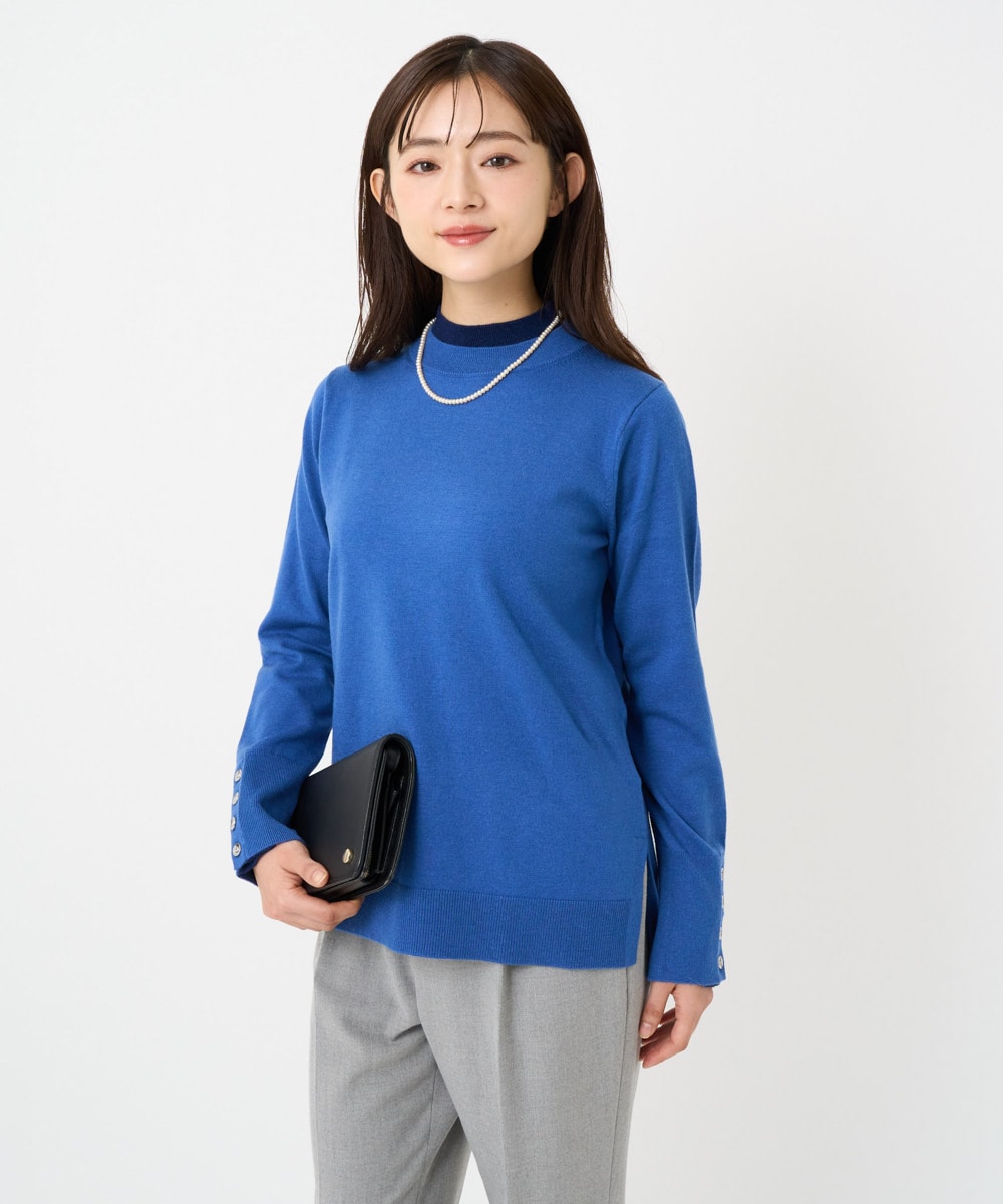 襟ぐりと袖口はレイヤード風に見え、楽しめる一枚。