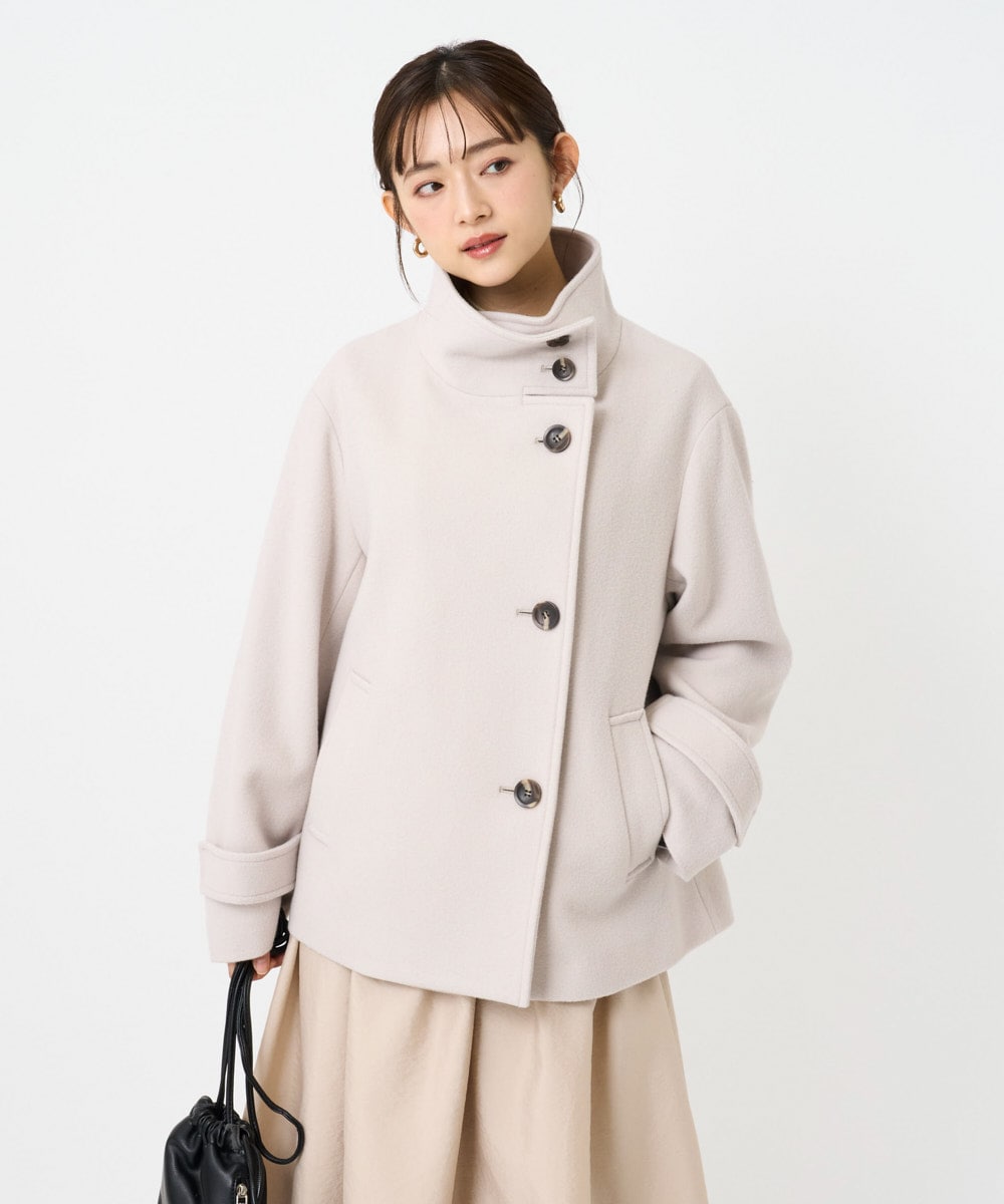 【小さいサイズ】エアリアルウール スタンドカラーショートコート