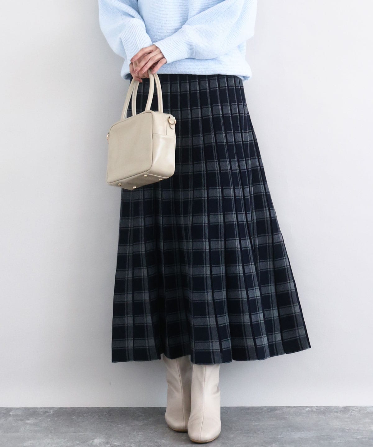 これだけで着映える主役級ニットスカート。長めの丈ですが、重たさはなく履いていても心地よいです。太めのプリーツで腰回りがタイトすぎず体のラインを拾いません!気になるかたは、長めのトップスで調整すると◎