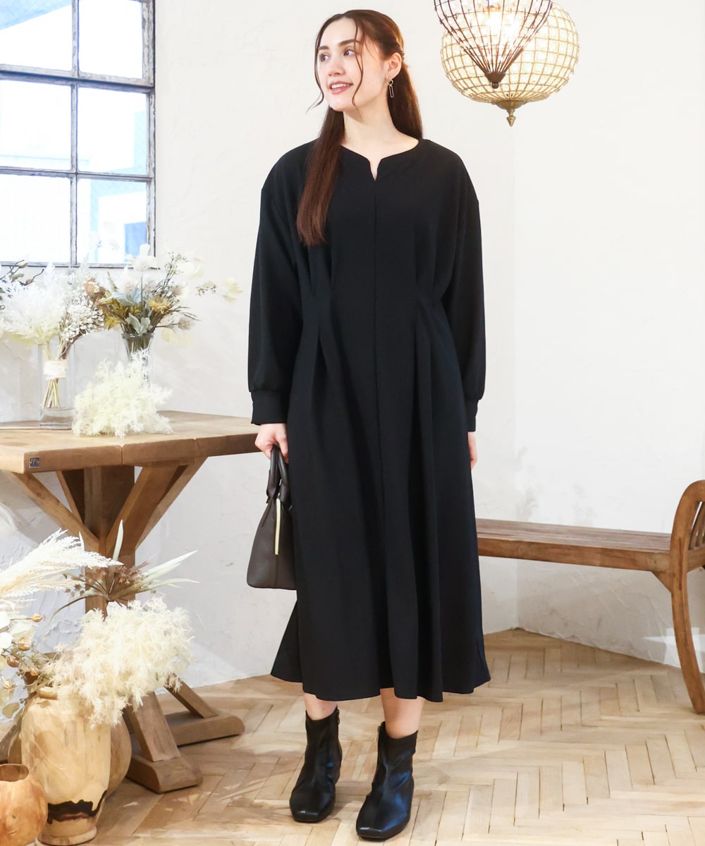 【大きいサイズ/LAVEANGE×eur3】タックジャージーワンピース