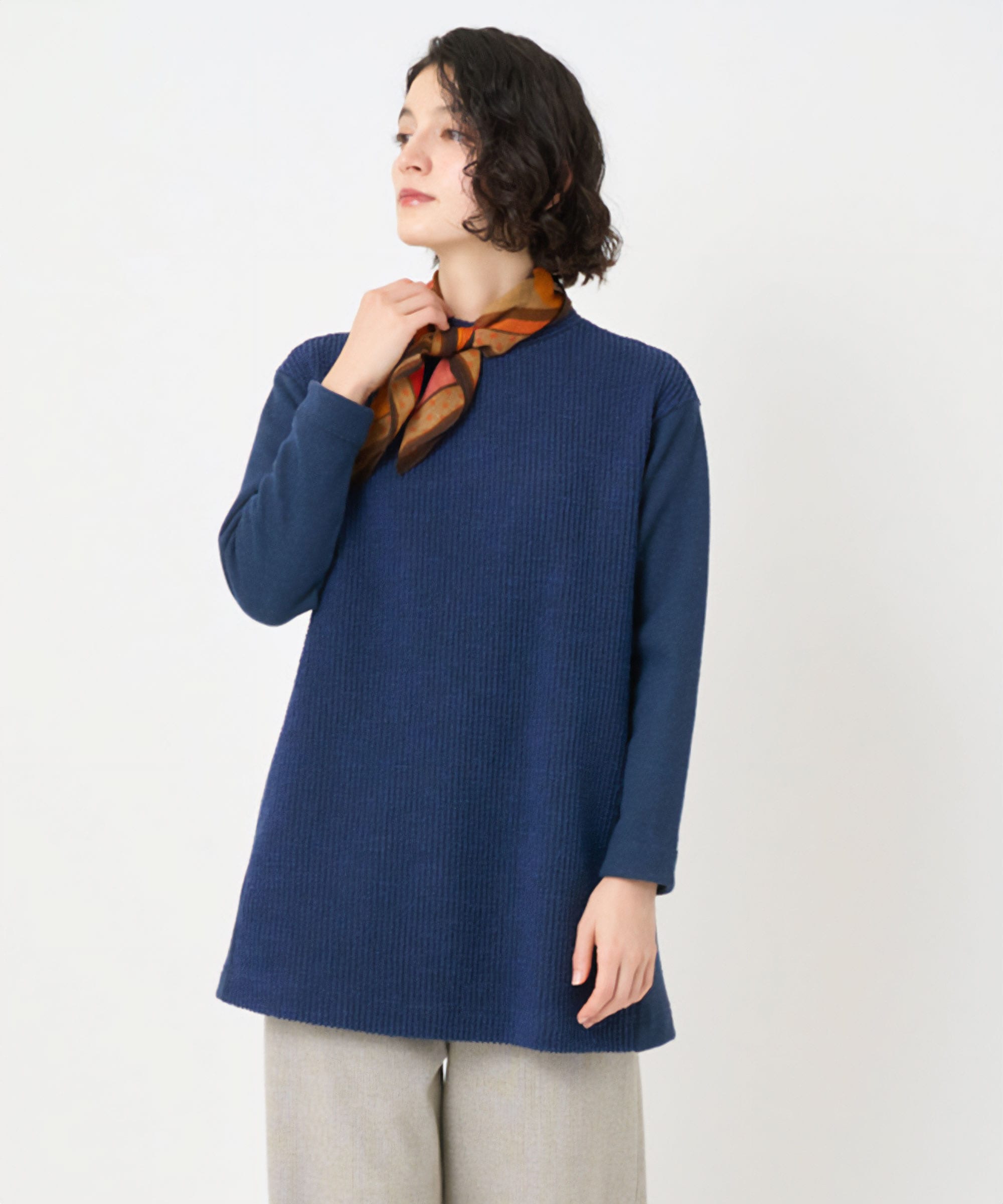 ゆとりもあるので厚手のニットもすんなり合わせられます。