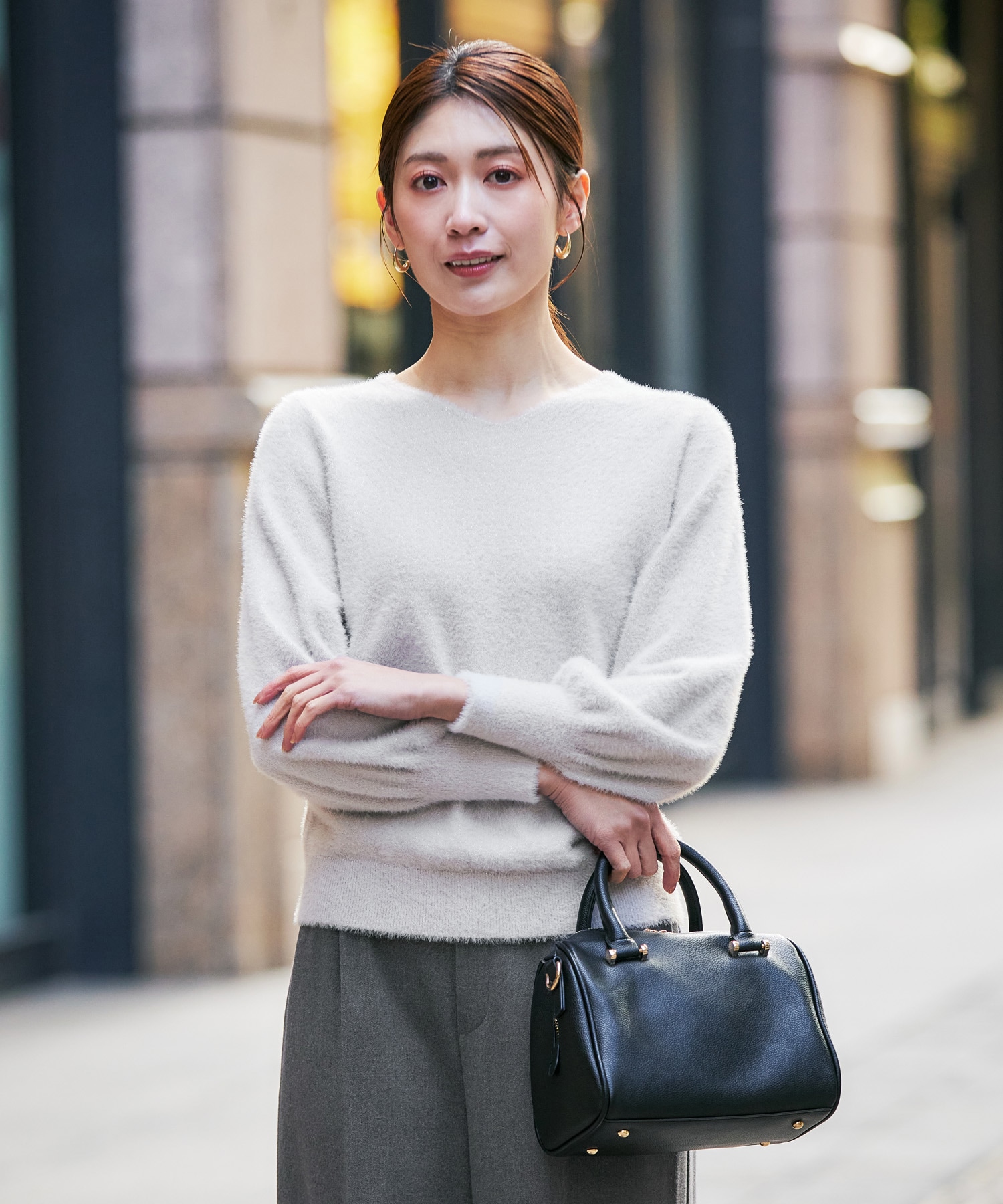 "ふわふわ×ラメ素材で女性らしい華やぎニット"