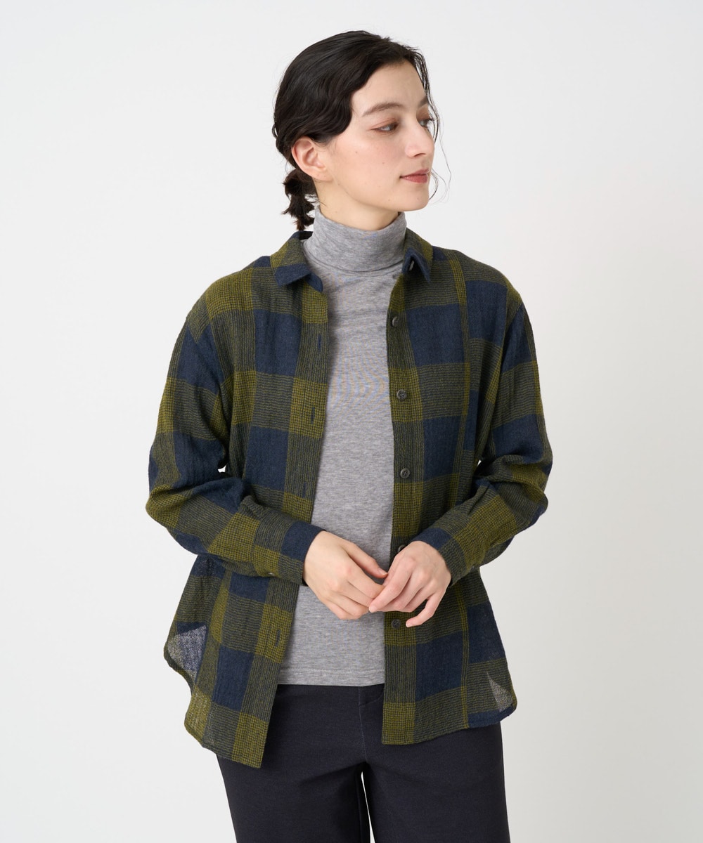 [日本製]リファインガーゼブロックチェックブラウス