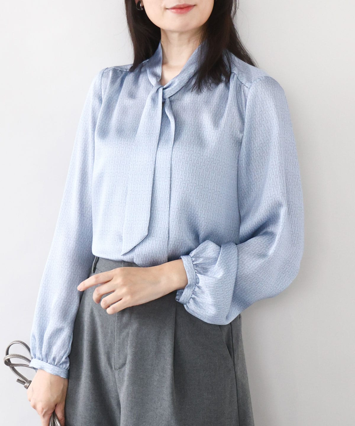 幾何柄ボウタイブラウス/洗える/WEB限定サイズあり