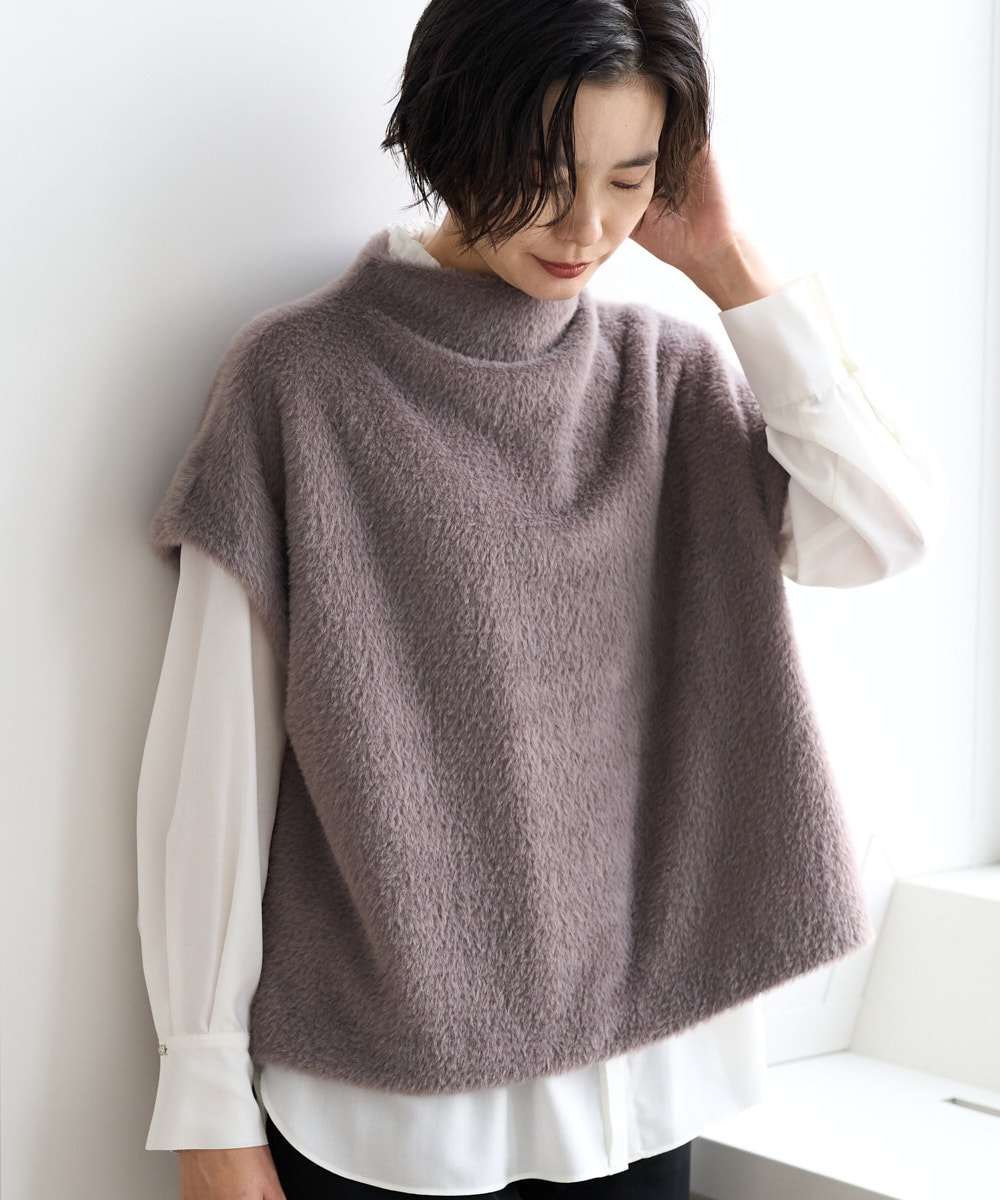 上品なボトルネックジレは、シンプルながらも洗練された印象を与えるデザインです。ゆったりとした着心地でふわふわな肌触りも◎