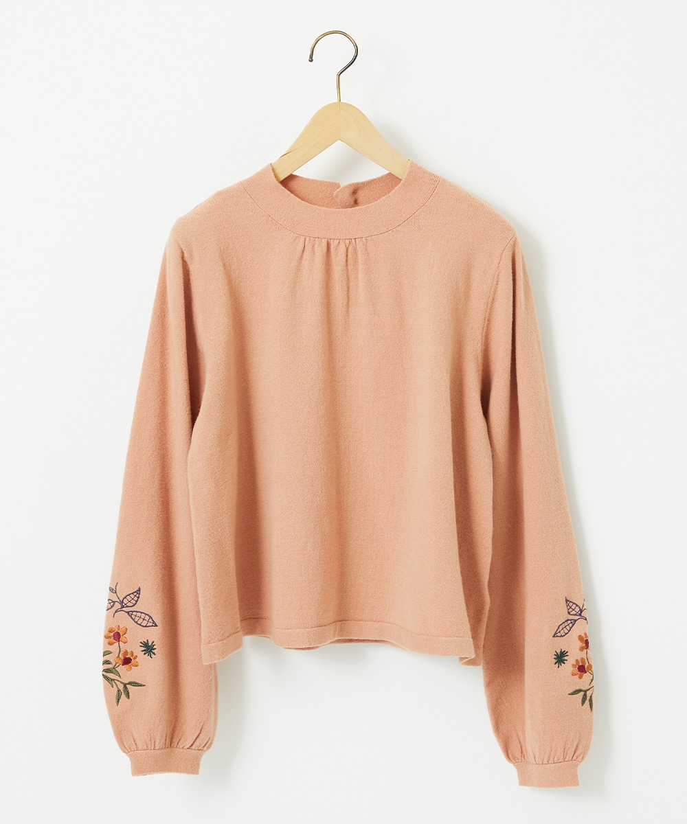 ふんわりとしたニット素材。上品な刺繍が華やかさを添え、どんなコーディネートにもマッチします。一枚で着るだけでなく、ジャンパースカートなどのインナーとしても重宝する万能アイテムです。