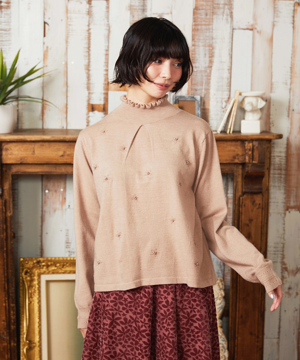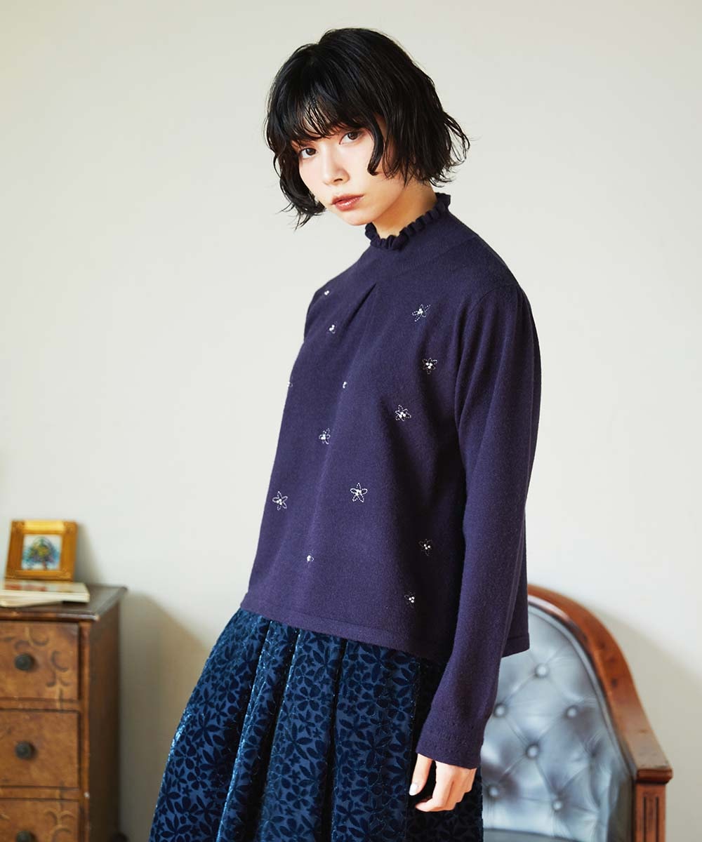 ハイネックのフリルや袖口もよく見たら可愛いんです♡