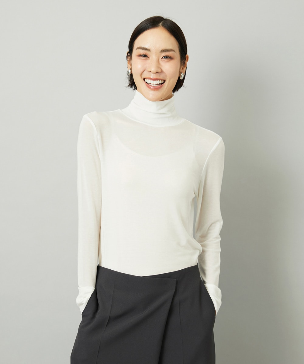 [小さいサイズ][レイヤードにおすすめ]シアーハイネックカットソー