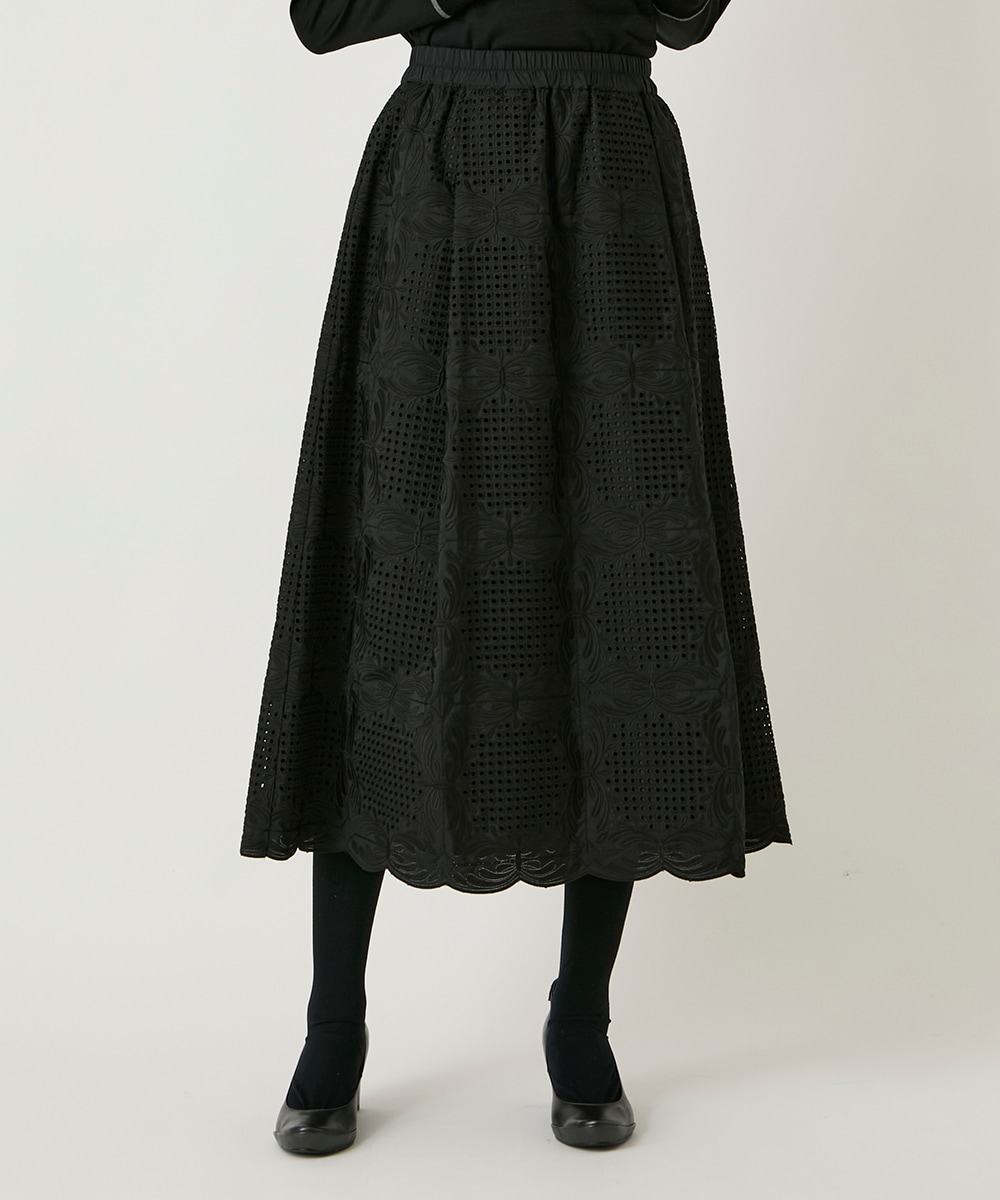 綺麗なレースのスカートに、コンパクトなジャケットのコーディネート