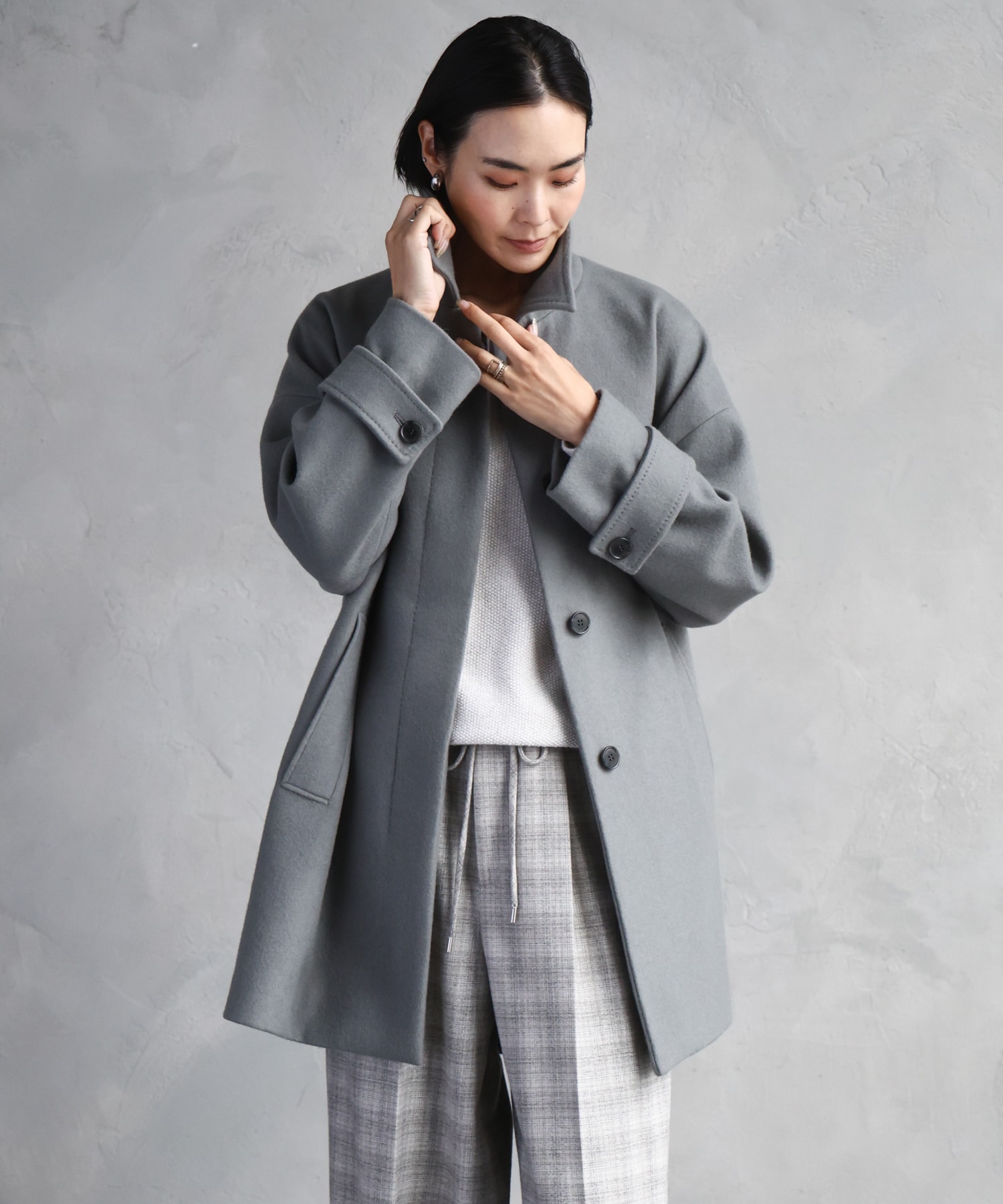 コートは、軽やかで暖かく、滑らかな風合いが