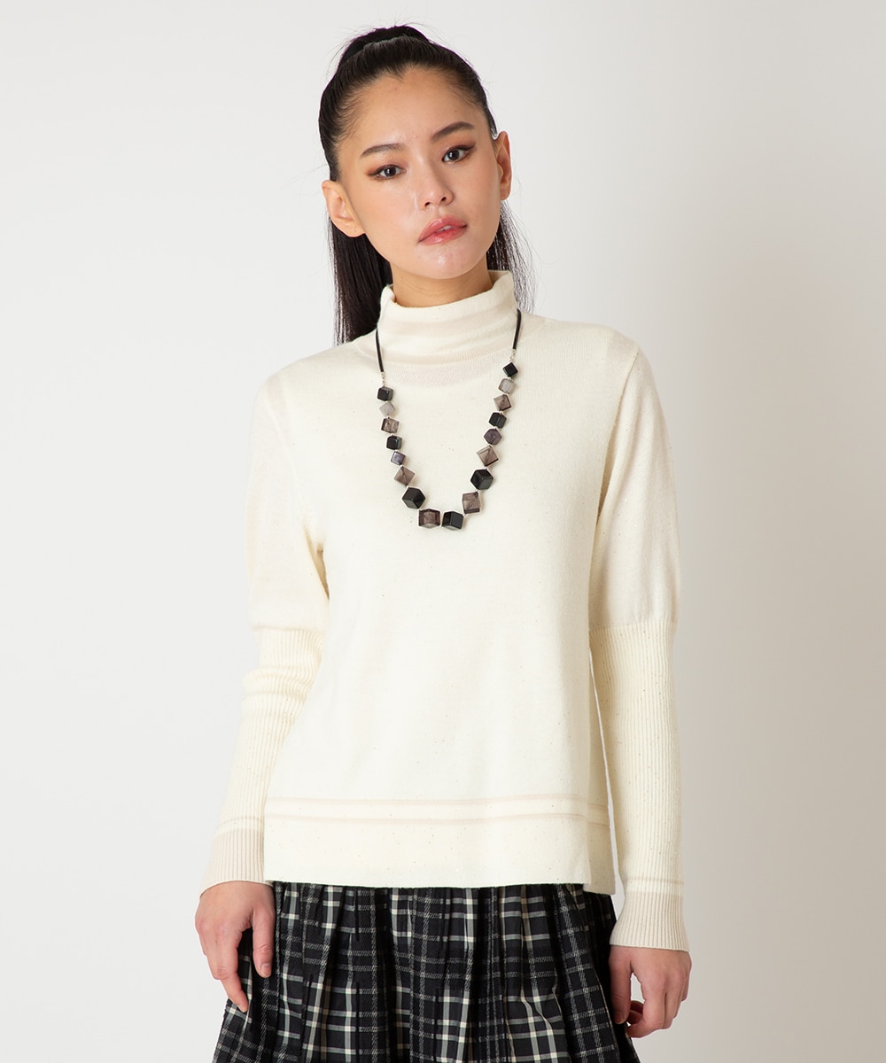 ·ボーダーネックスパンコールニット
