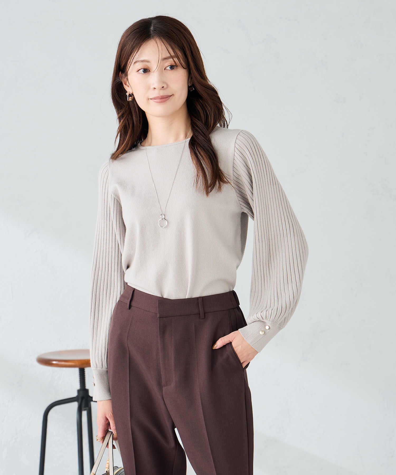 プリーツスリーブが華やかに決まる、好印象ニットはMサイズ着用でゆったり着れて華奢見えします