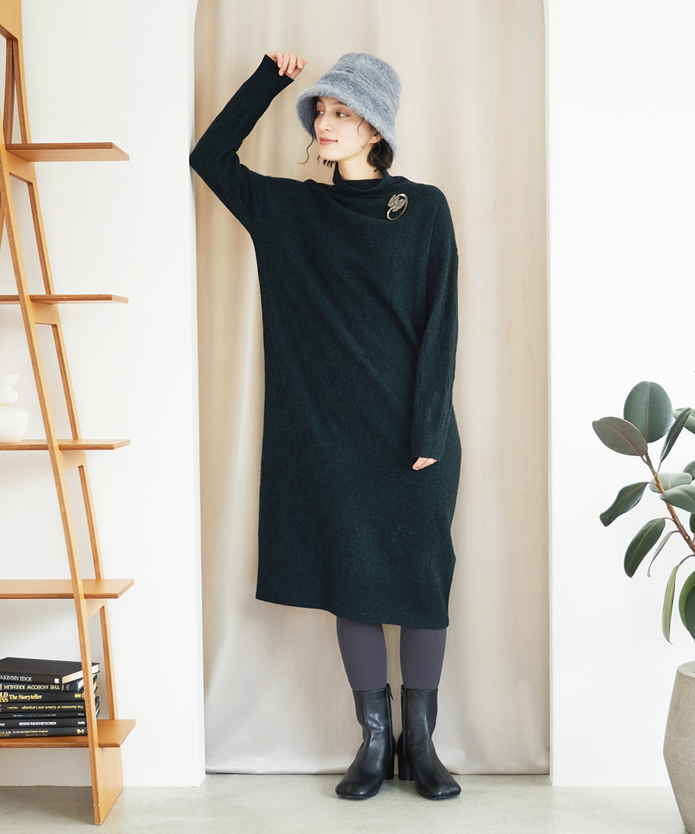 シンプルなデザインのニットワンピースはボトムに細身のワンピースパンツからワイドパンツまでコーディネートしやすいのも嬉しい♪
