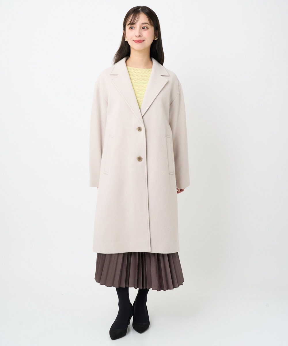 長過ぎない着丈はパンツからスカートまで羽織りやすいコートです。