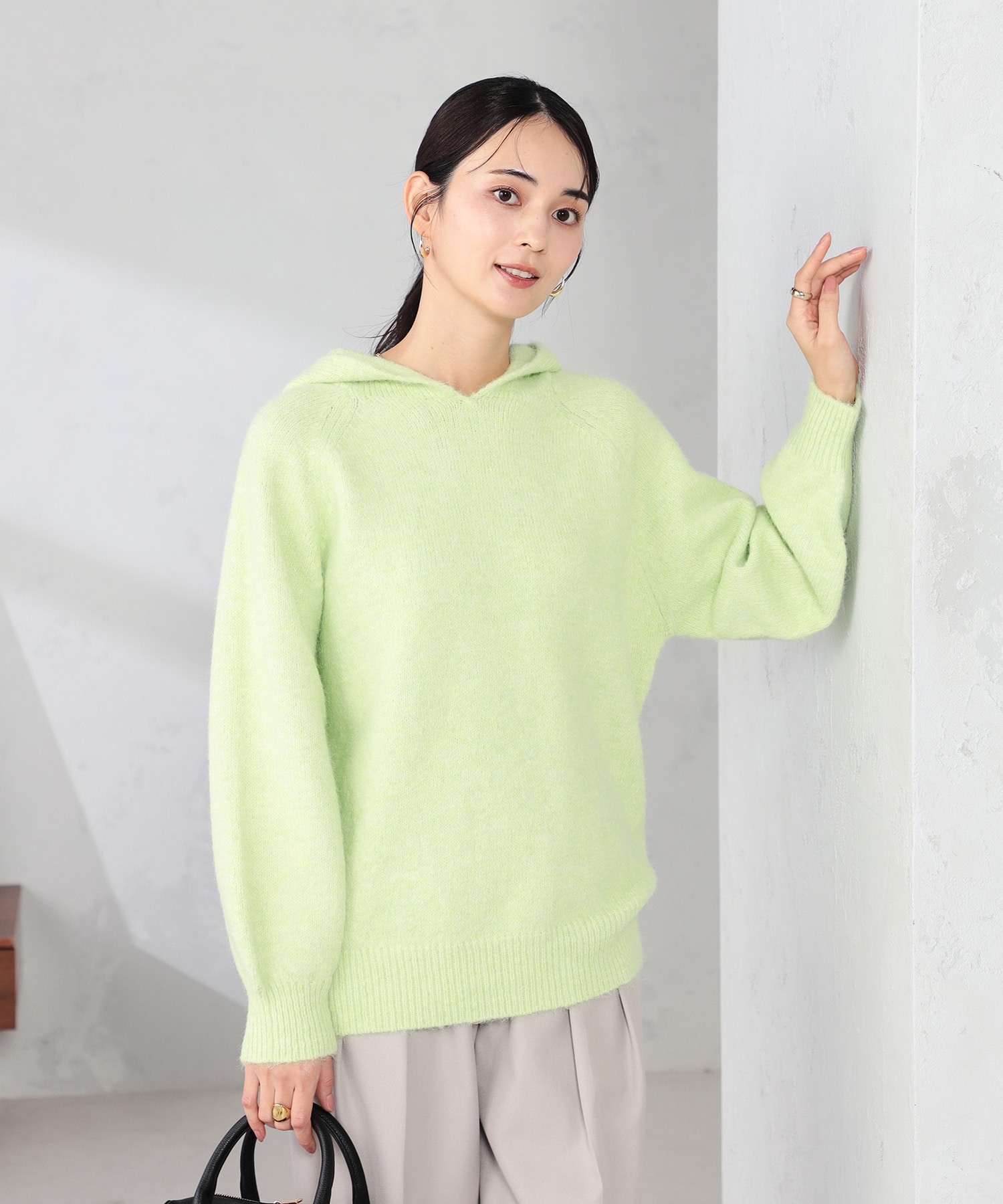 柔らかい起毛素材を使用したふわふわニットフーディー